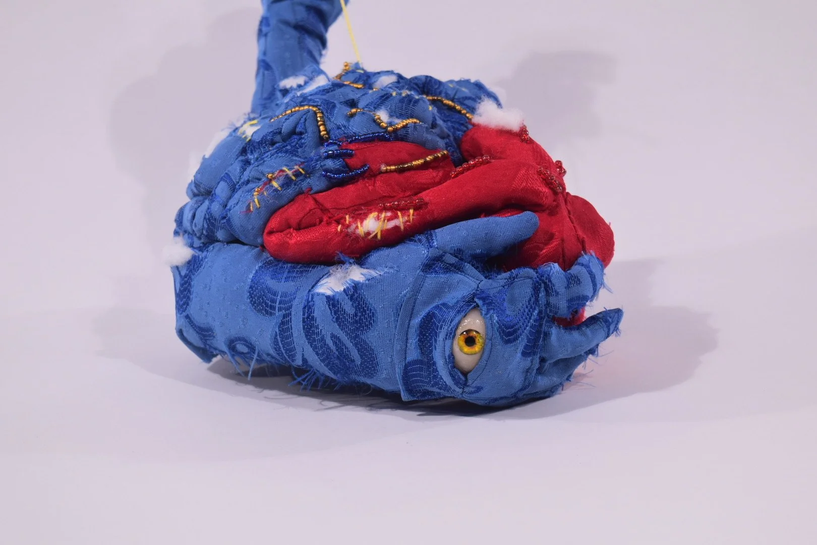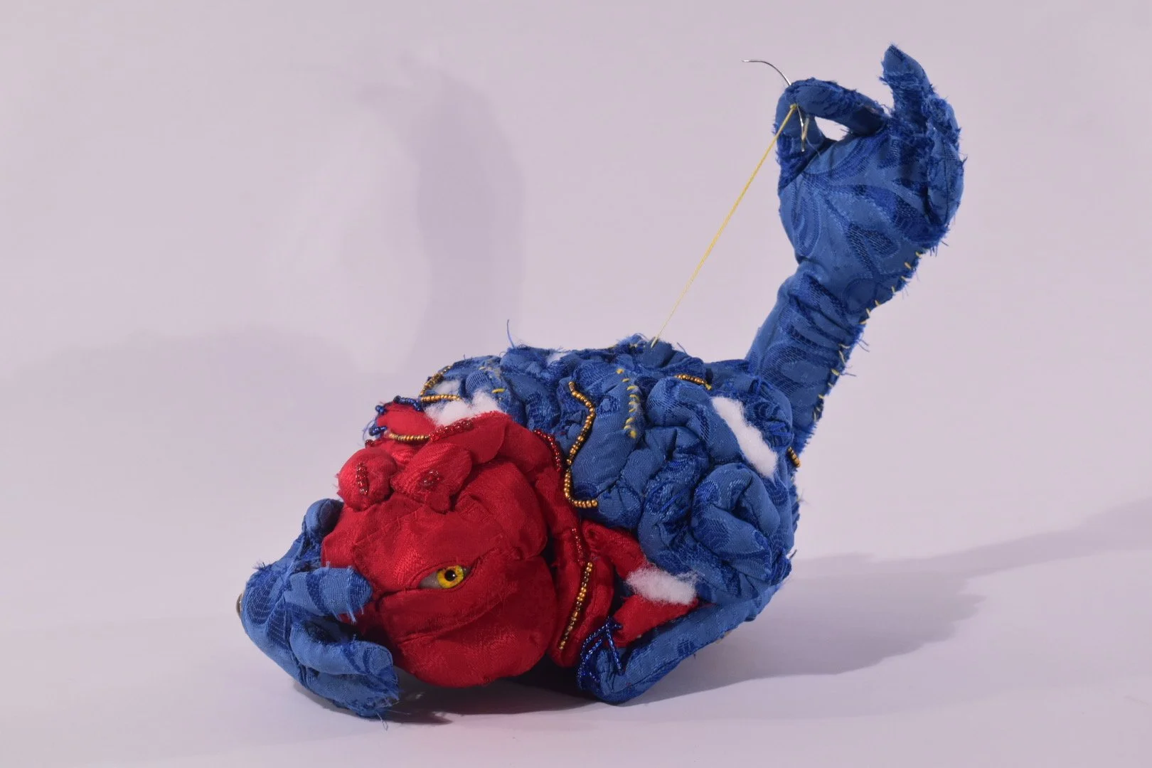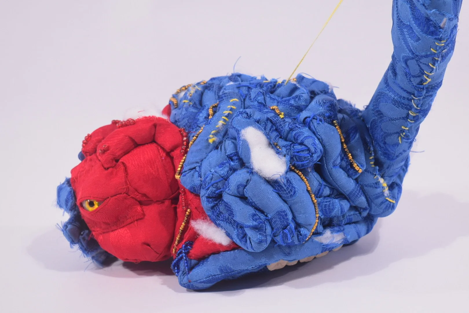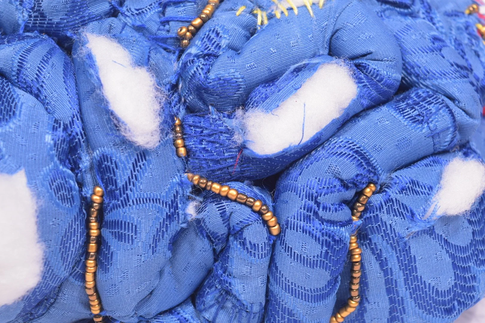 Materiales: Tela jacquard, porcelana flexible y abalorios