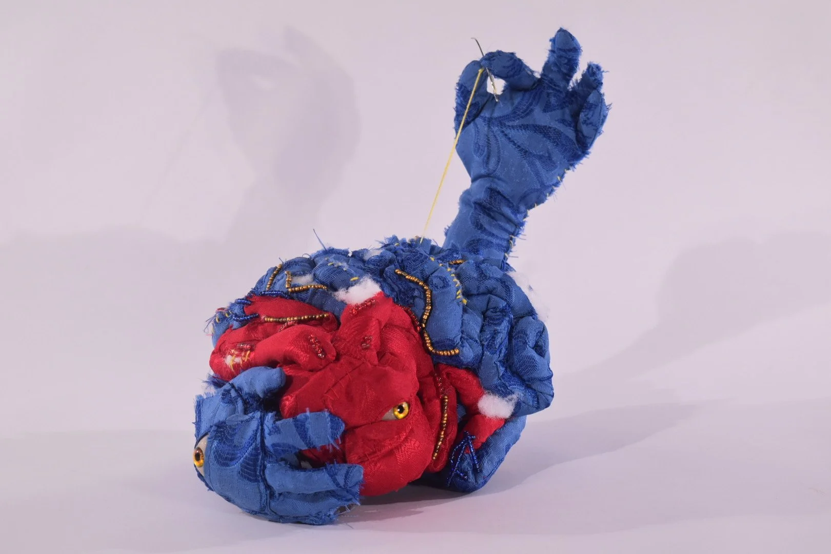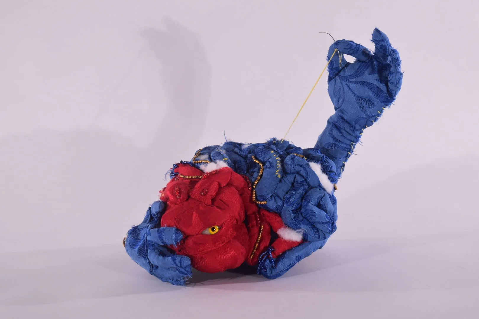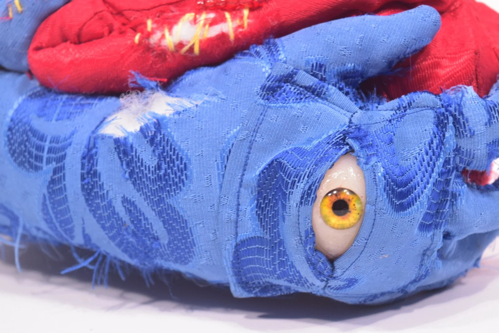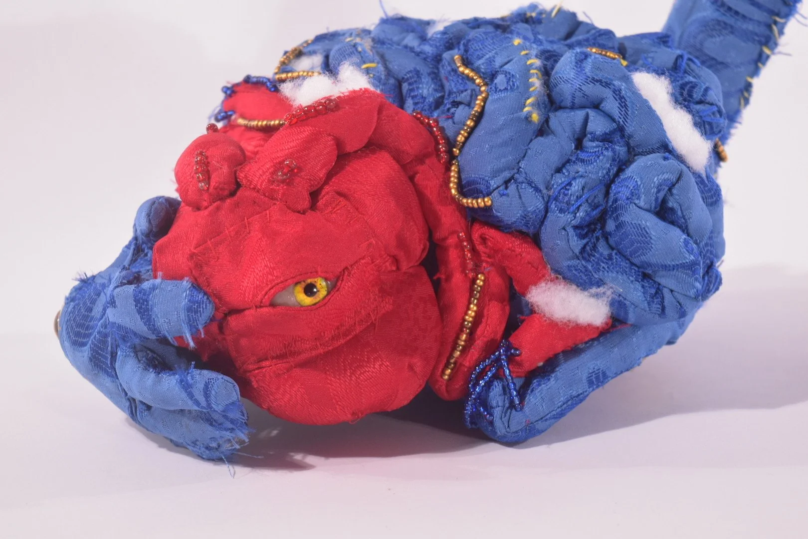 Materiales: Tela jacquard, porcelana flexible y abalorios